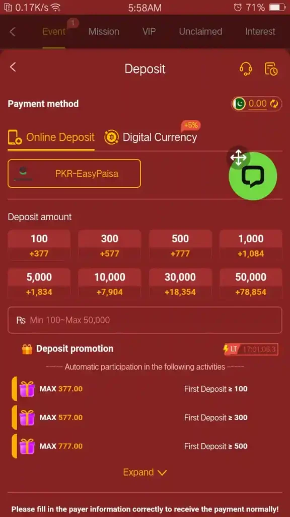 - Choose a payment method (Bank, Easy paisa, Jazz Cash, etc.).