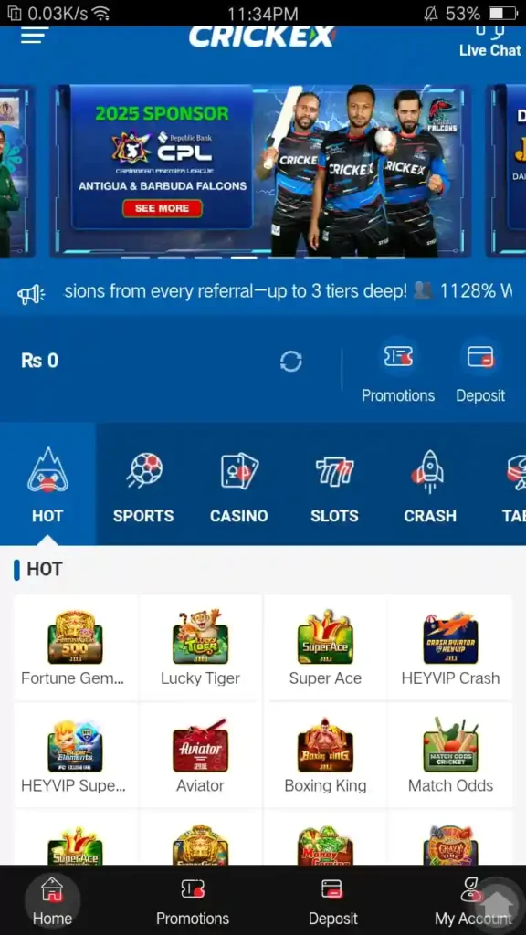 CRICKEX Game is a gaming and betting website that enables users to play sports betting, online casino games, and other engaging features through their mobile phones or laptops. The website has become popular all over South Asia, particularly in Pakistan, because of its seamless interface, range of games, and trusted services.