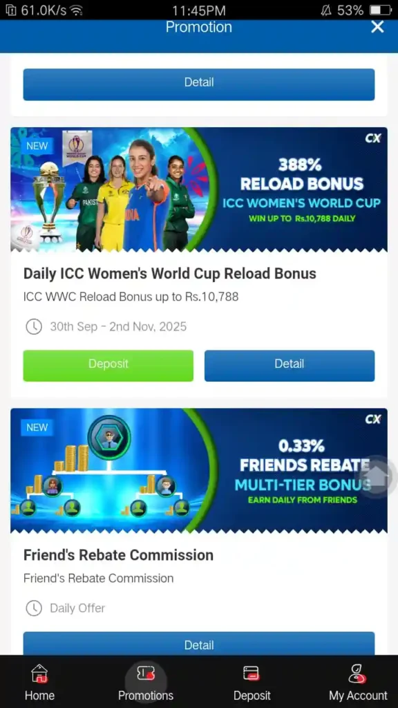 Yes, CRICKEX frequently provides welcome bonuses, referral bonus, and promotional offers.