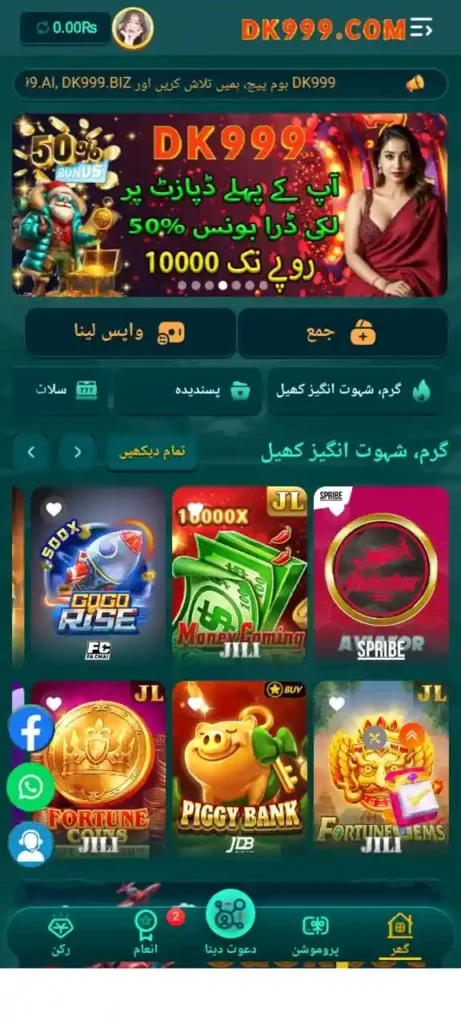 It also provides exciting rewards like welcome bonuses, deposit offers, and free spins. With secure payment gateways and instant withdrawals, DK999 is one of the best earning apps for Pakistani gamers.