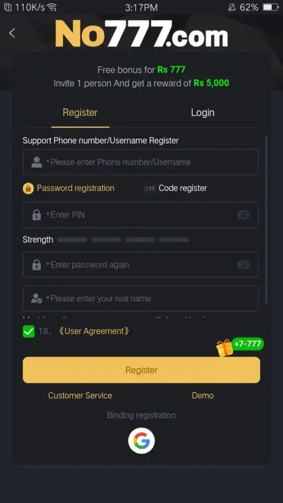 How to Register on No777 Game?