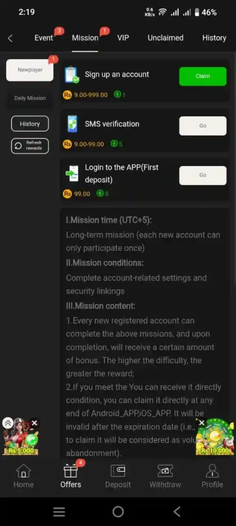 • Real Cash Rewards: Players can earn money directly in their accounts by completing tasks, winning games, or participating in special events.