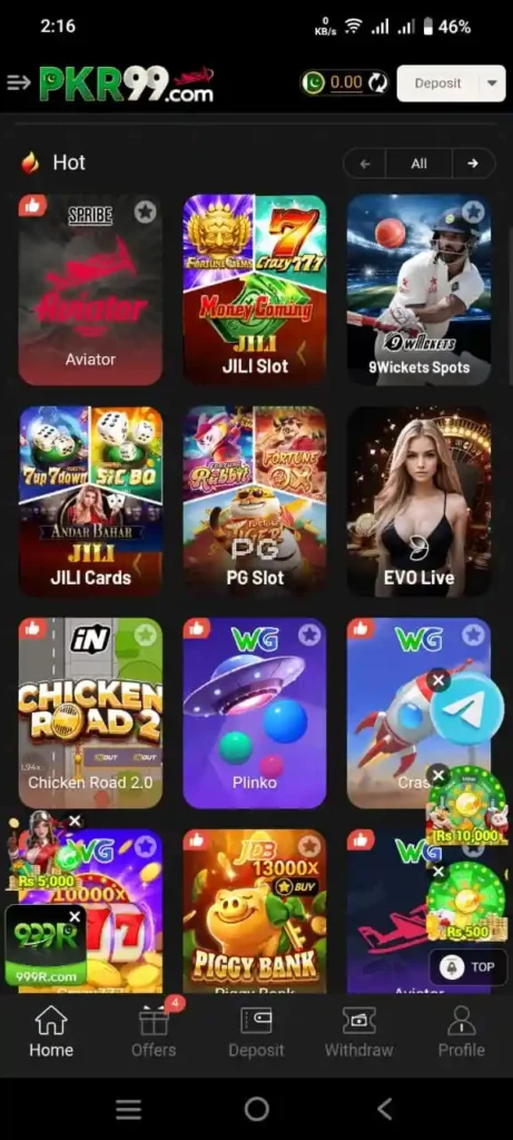 • Variety of Games: From lottery and slots to skill games and card games, PKR99 offers multiple options to cater to different preferences.