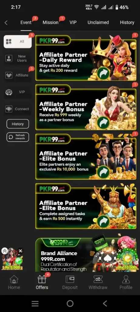 PKR99 Game has a strong referral system. You can invite friends, family, or others to join the platform and receive rewards for each successful registration. This method not only helps you earn extra cash but also grows the PKR99 community. Sharing your referral link on social media or directly with contacts can increase your income significantly.