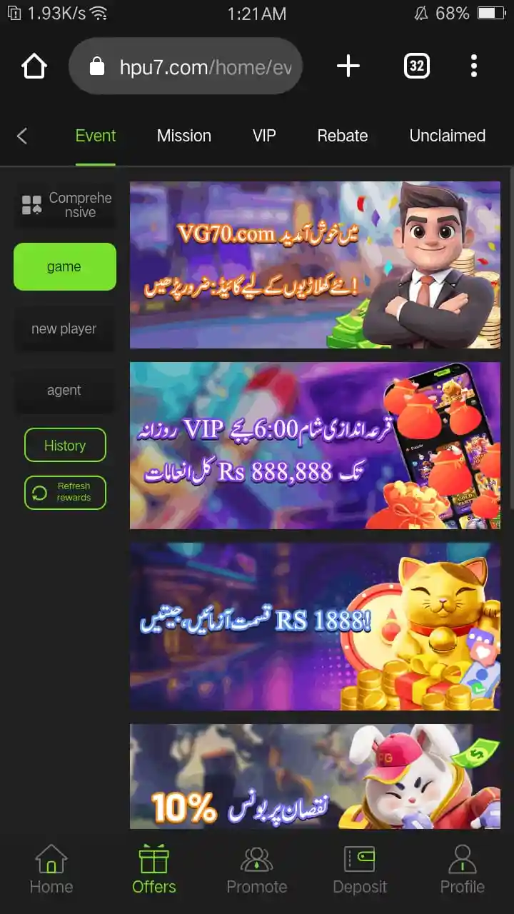 VG70 Game is a popular platform in which they give award’s and bonuses to there players the new users which join they will get money and the old players are already getting money this promotions attract the users and it is fun and chance to win more.