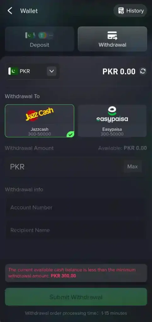 Deposits are instant, withdrawals usually take a few hours up to 24 hours.