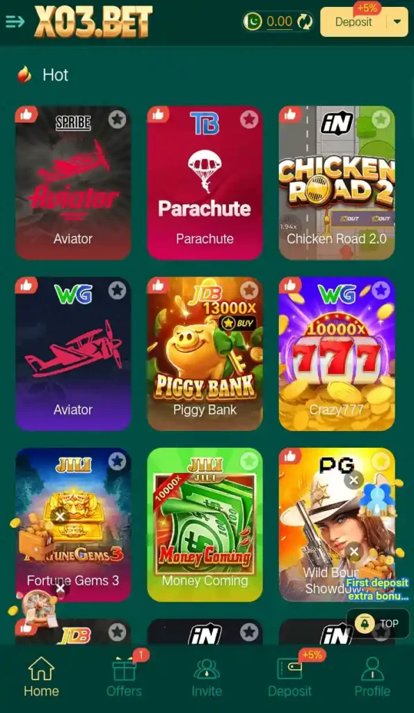 - Welcome Bonus: New players get extra funds on their first deposit.